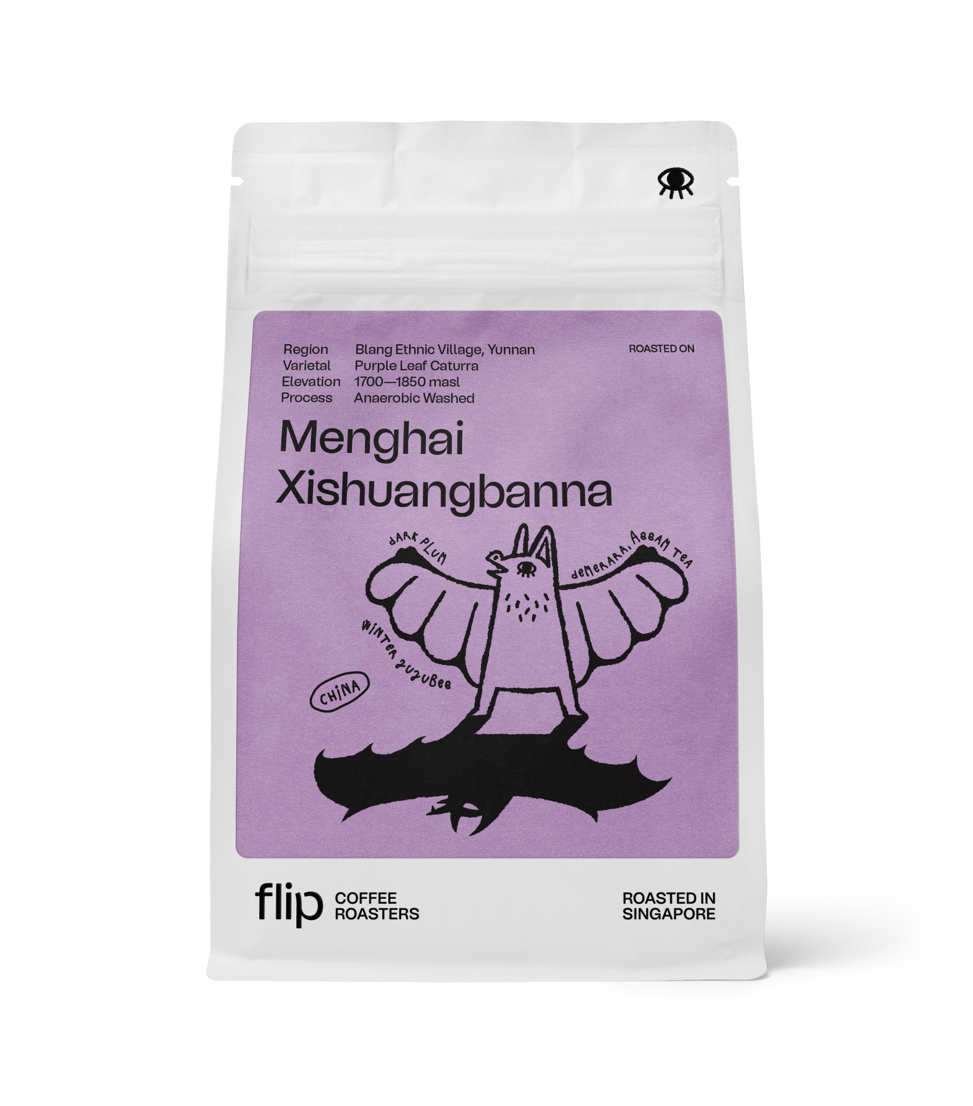 Purple Leaf Caturra from Menghai, in the lush mountains of Xishuangbanna, Yunnan, represents the cutting edge of China’s specialty coffee revolution. Grown at lofty altitudes of 1,700 - 1,850 meters by small Blang and Dai family farms, this rare selection is easily identified by its vivid purple leaves and berries - a visual and genetic anomaly among Arabica cultivars, derived from the Derui 296 line. Unlike the region’s dominant Catimor, Purple Leaf Caturra stands out for its vibrant acidity, richer sweetness, and a berry-driven cup profile.
